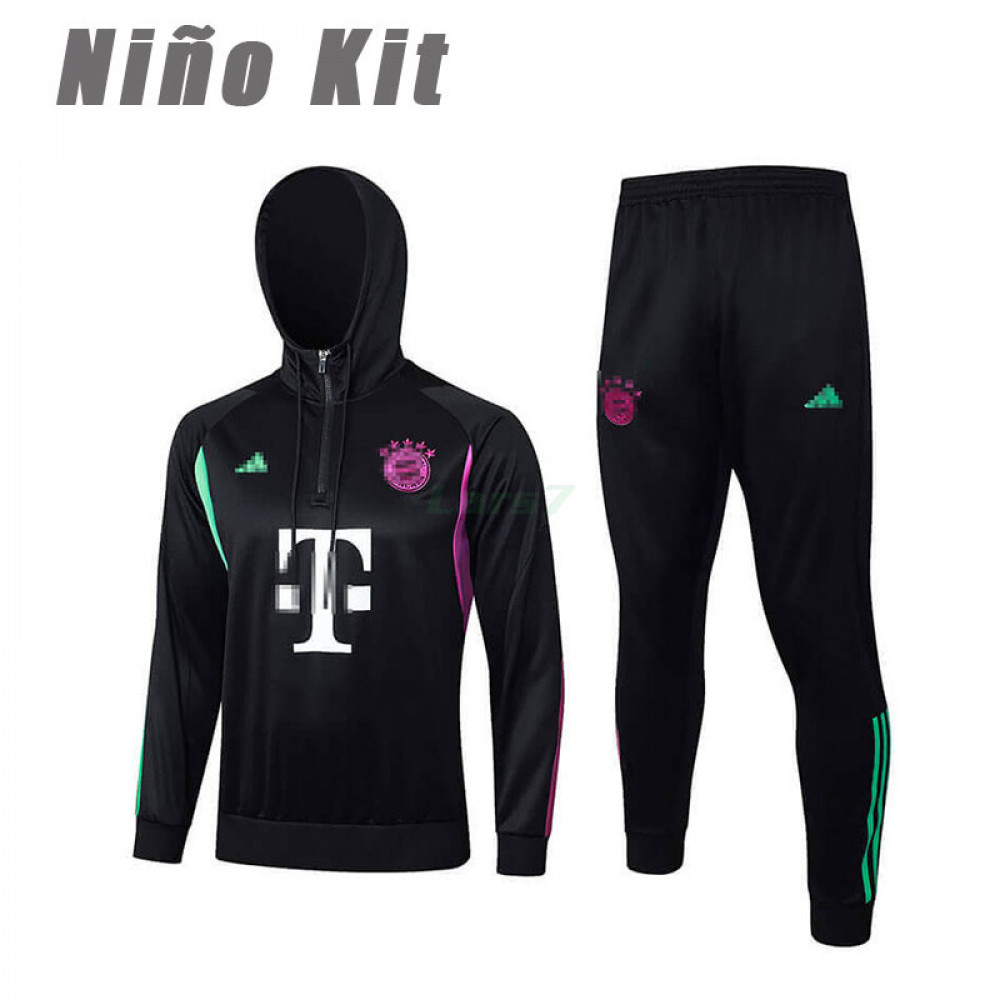 Felpa Da Allenamento Bayern Munich 2023/2024 Con CappuccioBambino Kit Nero è pensato per gli appassionati.