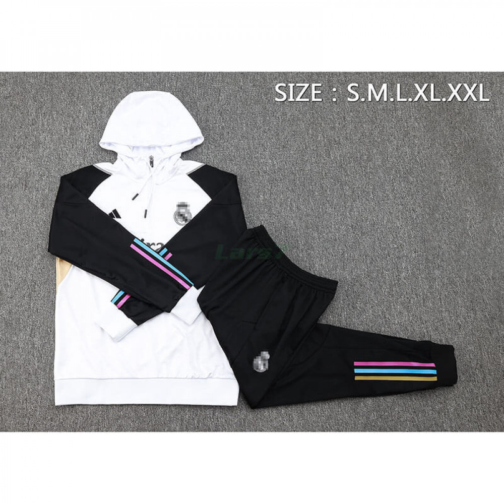 Felpa Da Allenamento Real Madrid 2023/2024 Con Cappuccio Kit Bianco/Nero
