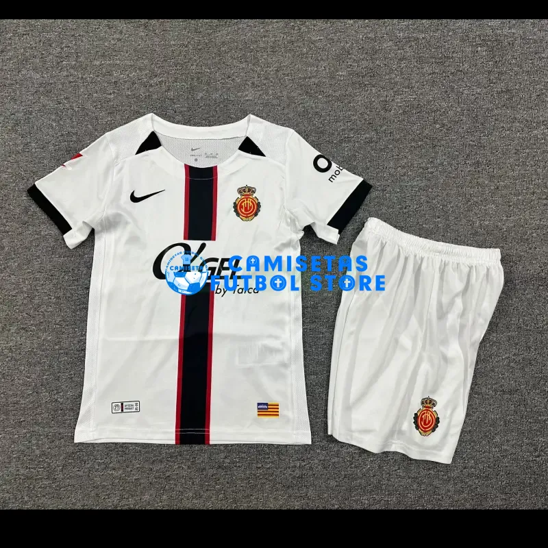 Maglia RCD Mallorca 2ª Calcio 2025/2026 Bianco Bambino Kit con Parche La Liga