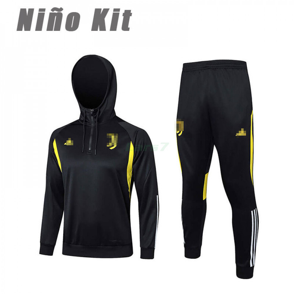 Felpa da Allenamento Juventus 2023/2024 Con Cappuccio Bambino Kit Nero è pensato per gli appassionati.
